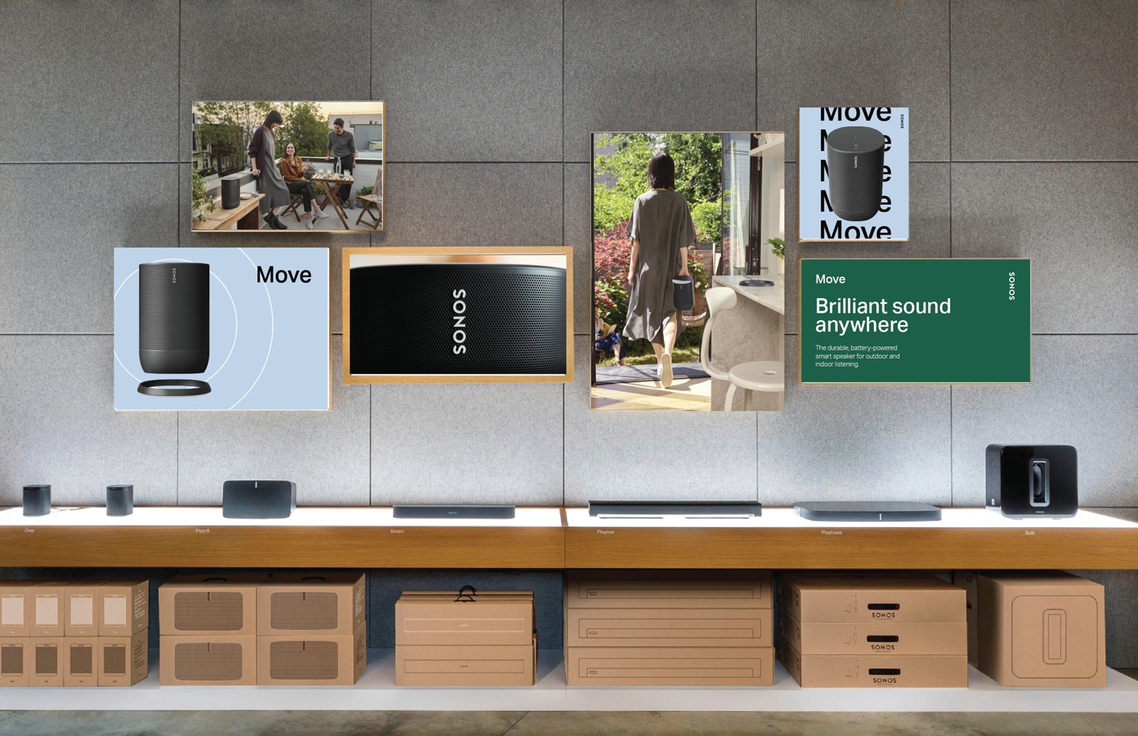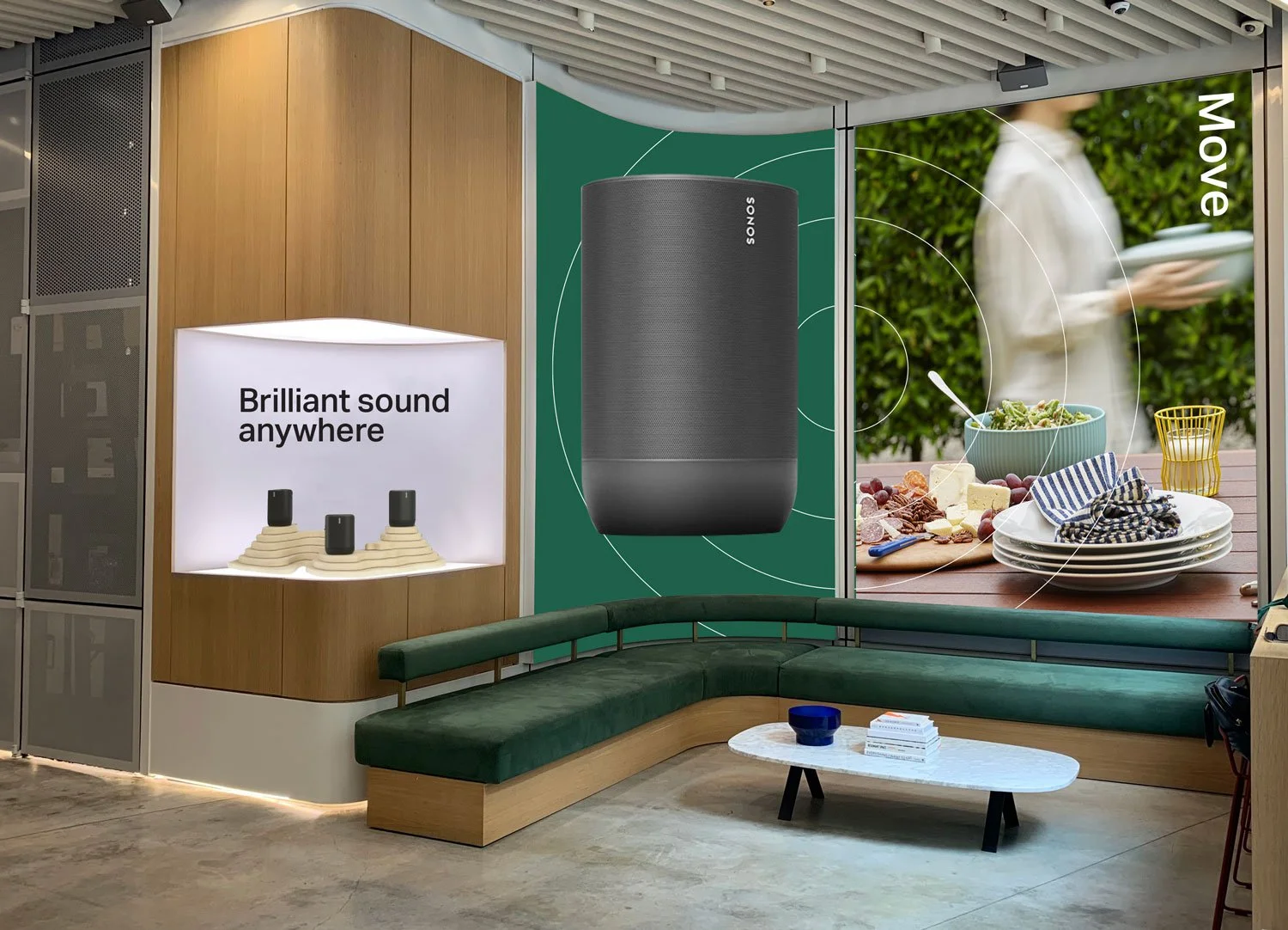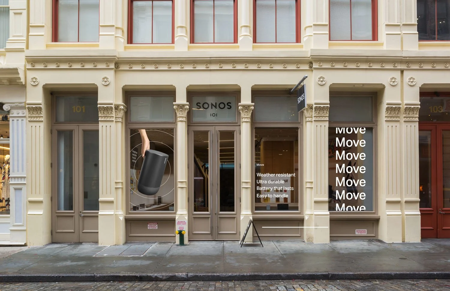 Exterior and interior graphics for the launch of the Sonos Move at their flagship NYC location.
